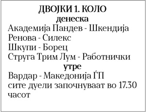 Првото коло од новото фудбалско првенство на Македонија во Првата лига, почнува викендов. Денеска ќе се одиграат четири средби, додека утре силите ќе ги одмерат Вардар и Македонија ЃП. Нови прволигаши се екипите на Борец и Струга Трим Лум, а титулата ја брани екипата на Шкендија.