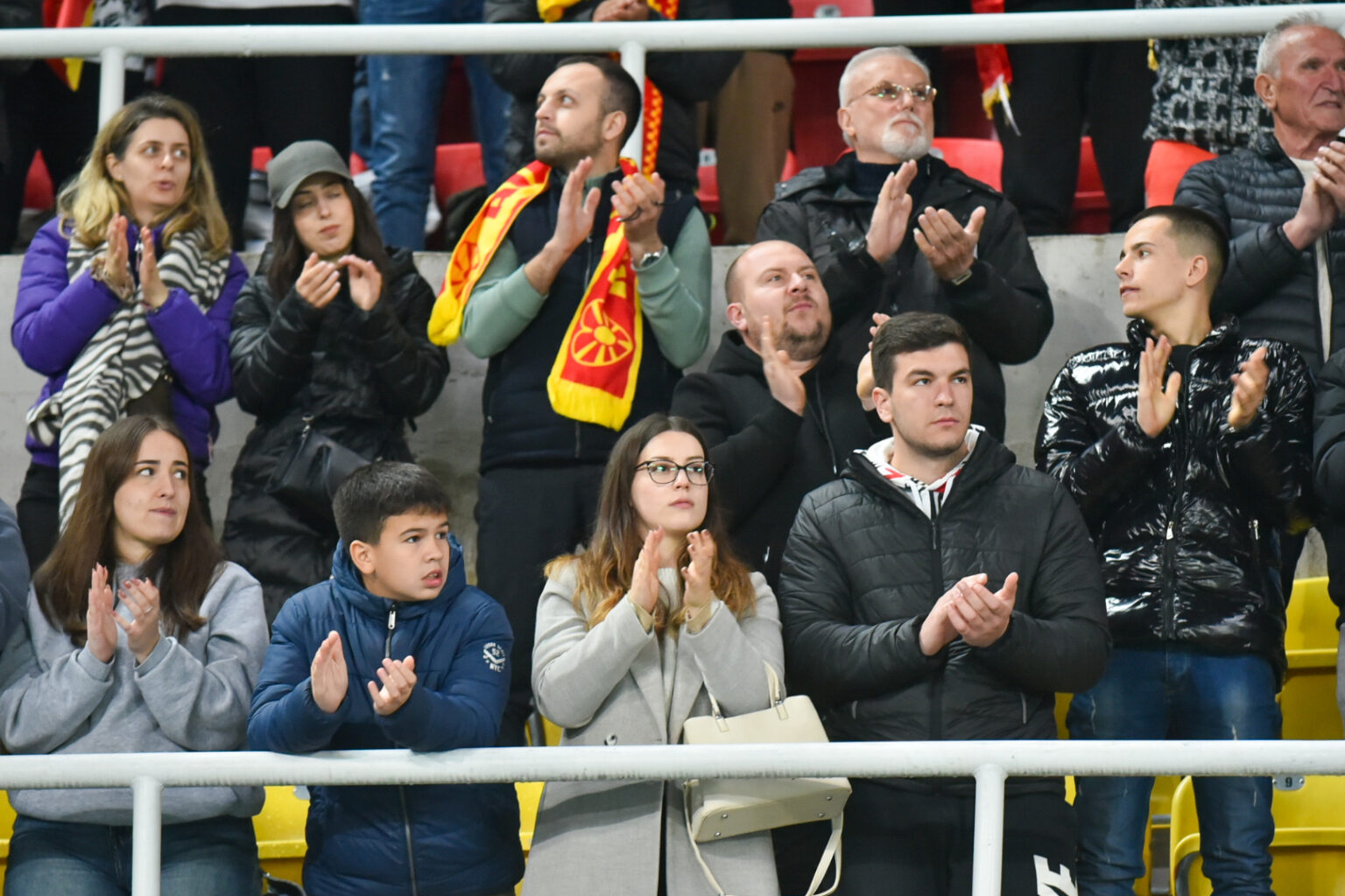 На Националната арена „Тодор Проески“ дојдоа голем број навивачи не само да гледаат натпревар, туку и во знак на поддршка за семејствата на жртвите од пожарот во Кочани. Сите пари од продадени билети ќе бидат донирани токму на нив. Натпреварот започна со минута молк за жртвите од Кочани.