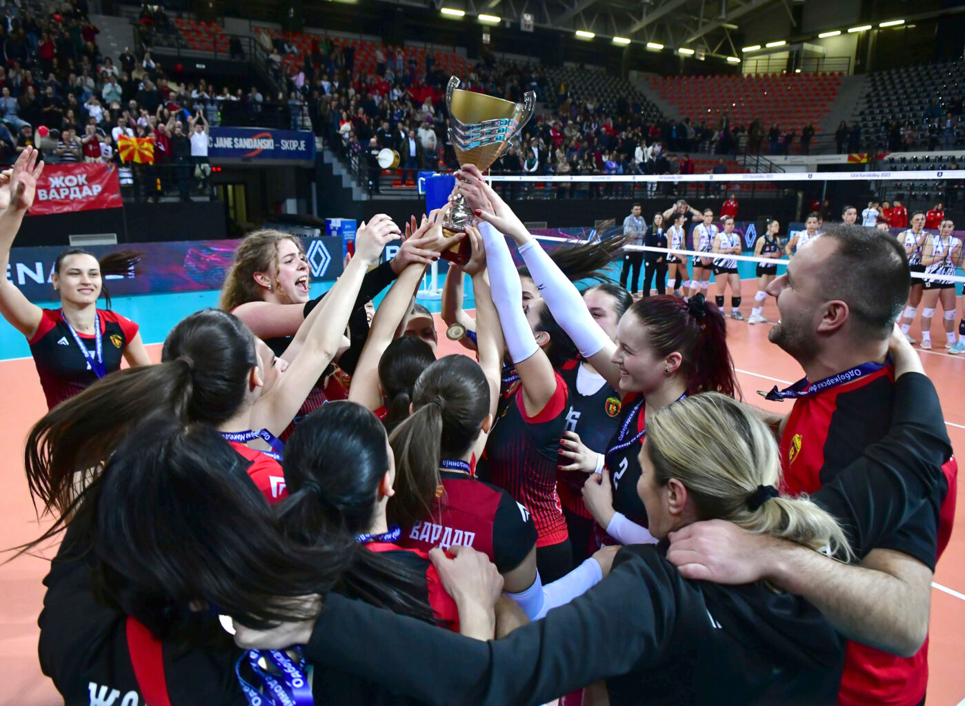 Скопски Вардар ЕМ направи историски подвиг, оти откако како дебитант со сигурна игра стигна до трофејот, совладувајќи го во финалето бранителот на трофејот, Наковски Волеј од Скопје, со 3-0 во сетови (25-22, 25-12, 25-22).