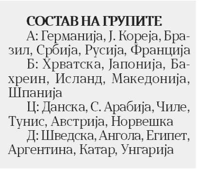 – Немавме многу среќа во ждрепката. Добивме квалитетни и незгодни европски репрезентации. Доколку не го прошириме нашиот состав со квалитетни играчи, кои ќе поделат квалитетна минутажа и одговорност, не можам да бидам голем оптимист. Уште повеќе ме загрижуваат слабите игри на медитеранците и поразите од Турција и од Египет, бидејќи во таа селекција имаме седум репрезентативци од А-селекцијата. Ќе пробаме да се подготвиме квалитетно и да го дадеме нашиот максимум – изјави капитенот Кирил Лазаров.
