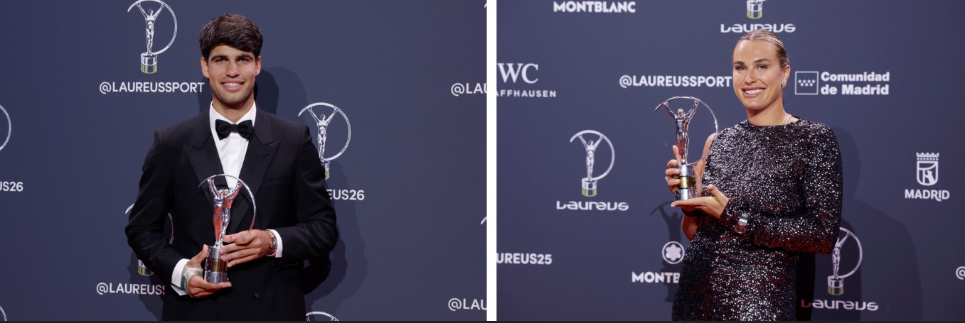 Тенисерите Карлос Алкараз и Арина Сабаленка се прогласени за спортист и спортистка на годината на доделувањето на наградите „Лауреус“ во Мадрид, а Пари сен Жермен е тимот на годината, пишува агенцијата „Асошиејтед прес“ (АП). Алкараз лани ги освои гранслем-турнирите Ролан Гарос и САД опен, плус Австралија опен во јануари. Сабаленка, највисокорангираната тенисерка, вторпат во низа победи на САД опен минатата година. ПСЖ во 2025 година ја освои својата прва титула во фудбалската Лига на шампионите.
