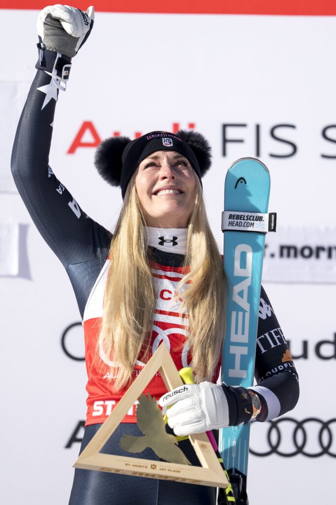 Американската скијачка Линдзи Вон победи во спуст-трката што вчера се одржа на патеката во Сент Мориц, Швајцарија. Со овој триумф, Вон на 41-годишна возраст стана најстарата победничка на трка во Светскиот куп. Американката стигна на целта со време од 1:29,36 секунди. Австријката Магдалена Егер заврши втора, со заостанување од 0,98 секунди, додека нејзината сонародничка Мирјам Пухнер беше трета, со заостанување од 1,16 секунди.