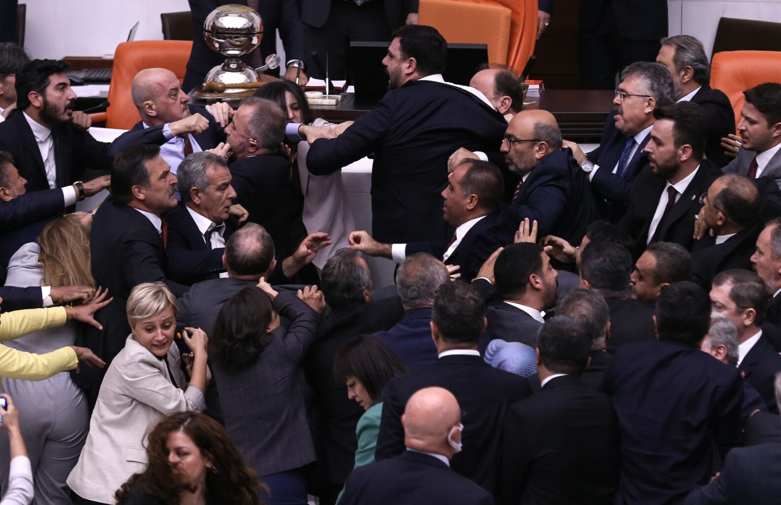 При денешното положување заклетва на министерот за внатрешни работи Мустафа Чифтчи и министерот за правда Акан Ѓурлек во Меџлисот, пратениците физички се пресметаа.