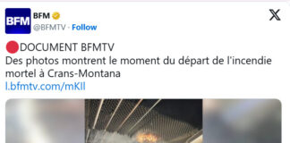 Францускиот информативен канал „БФМ ТВ“ (BFM TV) објави фотографија која го прикажува точниот момент на избувнување на пожарот во ноќниот клуб во Кран-Монтана.