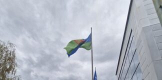 Со подигнување на знамето на ромската заедница, на јарболот пред