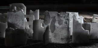 Изложбената поставка, со „левитирачки“ парафински форми и нивните сенковни проекции, создава впечаток на урбана фрагментација и климатска халуцинација - град...