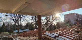 Силен ветер откорна лимена конструкција од училишен покрив во Гевгелија, соопшти...