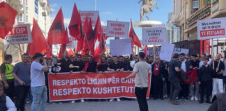 Албански студенти денеска протестираа пред Министерството за правда во Скопје, барајќи правосудниот испит да може да се полага и на албански јазик. Дел од...