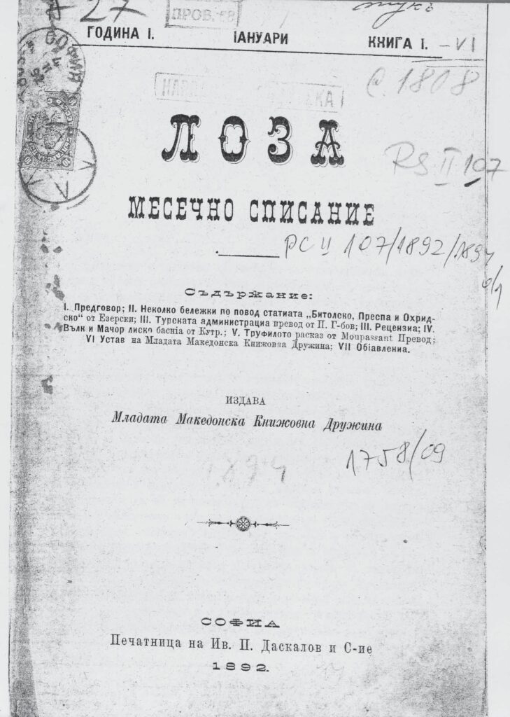 Млада Македонска книжовна дружина, ЛОЗА, 1892