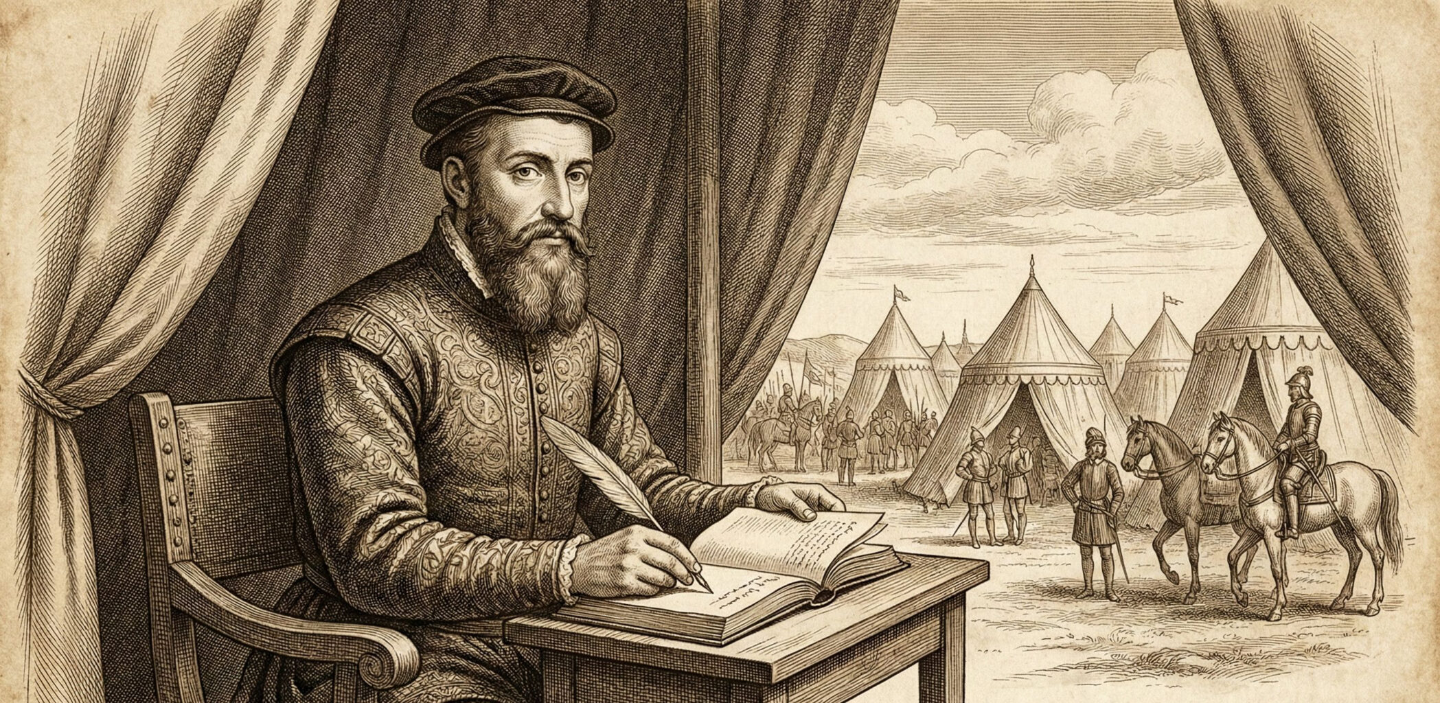 Приказната започнува во драматичните години на венецијанско-отоманските судири. Анџиолело, капетан на венециската пешадија, по падот на Евија (Негропонте) во јули 1470 година, ја доживува судбината на многумина – неговиот брат Франциско е убиен, а тој е одведен во заробеништво од страна на султанот Мехмед Втори Освојувачот. Но токму оваа трагедија го претвора Анџиолело во еден од најважните хроничари на своето време. Како дел од свитата на султанот, тој добива единствена можност да ја пропатува Македонија и да го запише она што го гледа со свои очи, без политичките филтри на подоцнежните векови. Бидејќи поминал многу години во Истанбул и го научил јазикот, неговите записи се ослободени од вообичаените предрасуди на тогашните западни набљудувачи, нудејќи фактографски преглед на теренот низ кој поминувала османлиската војска. Она што фасцинира во записите на Анџиолело е прецизноста со која тој ги дефинира границите. За него, Македонија не е апстрактен поим, туку конкретна територија со јасни меѓи. На 8 август 1470 година, тој запишал дека султанот запрел во едно поле што „ја претставува границата на Македонија“. Движејќи се од Платамон кон север, Анџиолело ни дава жив опис на македонскиот пејзаж: од соланите кај Китрос до моќната река Вардар, за која експлицитно наведува дека „поминува низ Македонија и се влева во Солунскиот Залив“. Овој опис е од суштинско значење бидејќи ја позиционира Македонија како централен географски поим, различен од околните региони, богат со ресурси и „одлични расни коњи“ донесени од Азија. Значаен аспект на овој патопис е јасната географска перцепција за Македонија.
