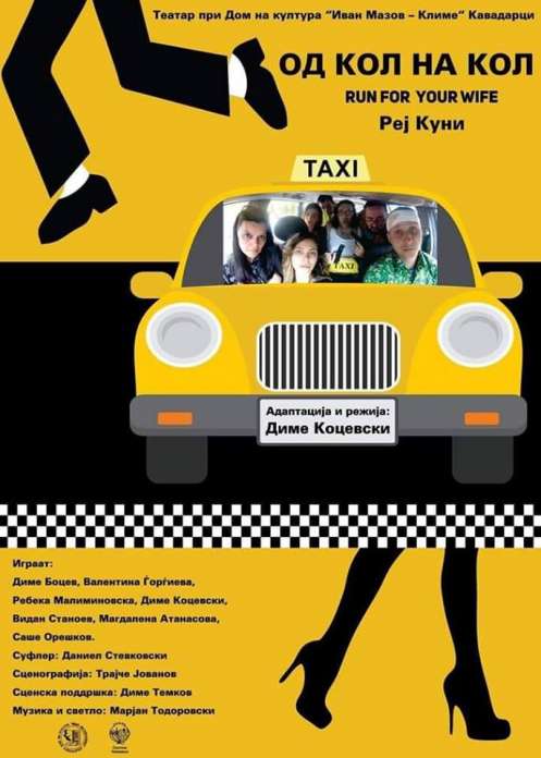 Вечерва со почеток во 20 часот на сцената на Домот на културата „Иван Мазов Климе“ во Кавадарци се случува премиера на претставата „Од кол на кол“ во адаптација и режија на Диме Коцевски. Станува збор за комедија на познатиот англиски комедиограф Реј Куни, со оригинален наслов „Run for jour wife“.