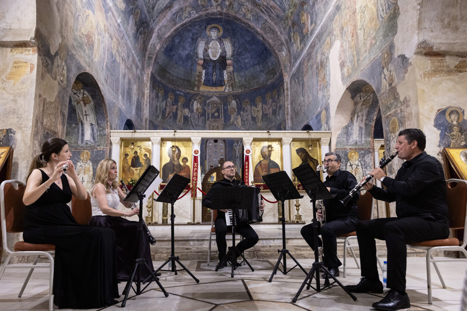 Камерниот ансамбл „Консонанс“ со концертот „Мозаик“ вчеравечер се претстави пред публиката на фестивалот „Охридско лето“. Извонредните уметници, флејтистката Елена Дојчинова, Маја Чанаќевиќ која свири на англиски рог, кларинетистот Здравко Ангелов, Сашо Темелковски на бас-кларинет и Дарко Илиевски на хармоника кои се и професионални музичари во Македонската филхармонија, ја збогатија фестивалската програма на класична музика со дела напишани од македонски композитори.