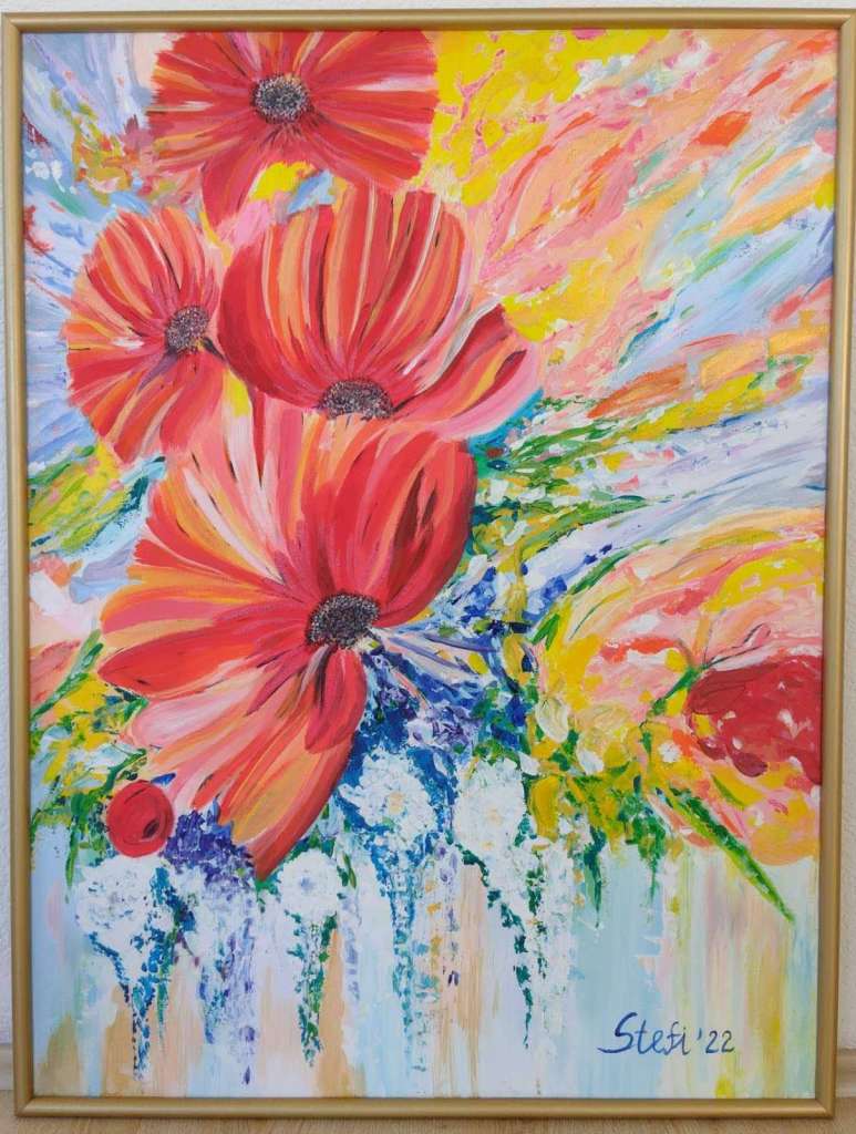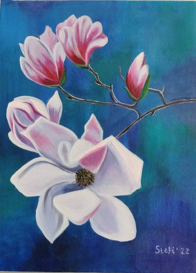 татко. Овој мој прв цеклус на слики насловен едноставно само „Цвеќиња“ кој се осмелив да ги изложам пред јавноста всушност ја отсликува големата љубов и грижата која татко ми ја негуваше према цвеќето и таа љубов и грижа успеа да ја пренесе и на неговите најблиски. Горда сум што успеав со моите цветни мотиви да доловам и пренесам барем мал дел од целата таа цветна убавина на моите платна и за тоа мнугу му благодарам на моето семејство што имаше разбирање и ми го овозможи тоа – вели Стефанка Коцева.