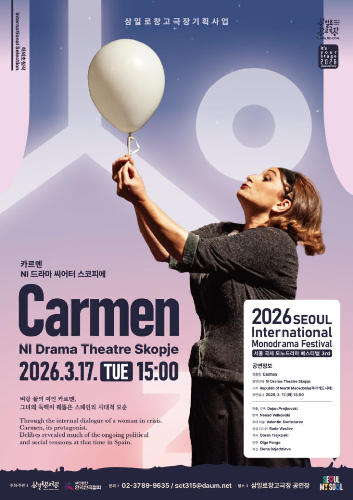 Со монодрамата „Кармен“, Драмскиот театар денеска ја отвора официјалната програма на Интернационалниот фестивал на монодрама во Сеул, Јужна Кореја. Фестивалот се одржува од 17 до 26 март, во организација на театарот „Самилро Чанго“ од Сеул. Oвој театар е историски исклучително важен „мал театар“, кој се смета за центар на алтернативната и современа сцена во Јужна Кореја. Со меѓународниот фестивал посветен на монодрамата како специфична и исклучително предизвикувачка сценска форма, театарот успешно се позиционира на светската театарска мапа.