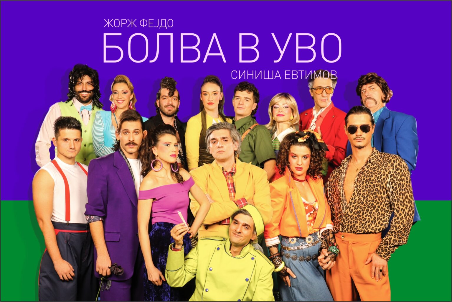 Претставата „Болва в уво“ е работена по најпознатиот текст на францускиот драмски писател Жорж Фејдо, напишан во 1907 година. Во Драмски театар е поставен во седумдесеттите години и претставата имала 456 изведби. Постановката што ја режираше Синиша Евтимов ја имаше премиерата на 17 декември минатата година и досега се играше 12 пати.