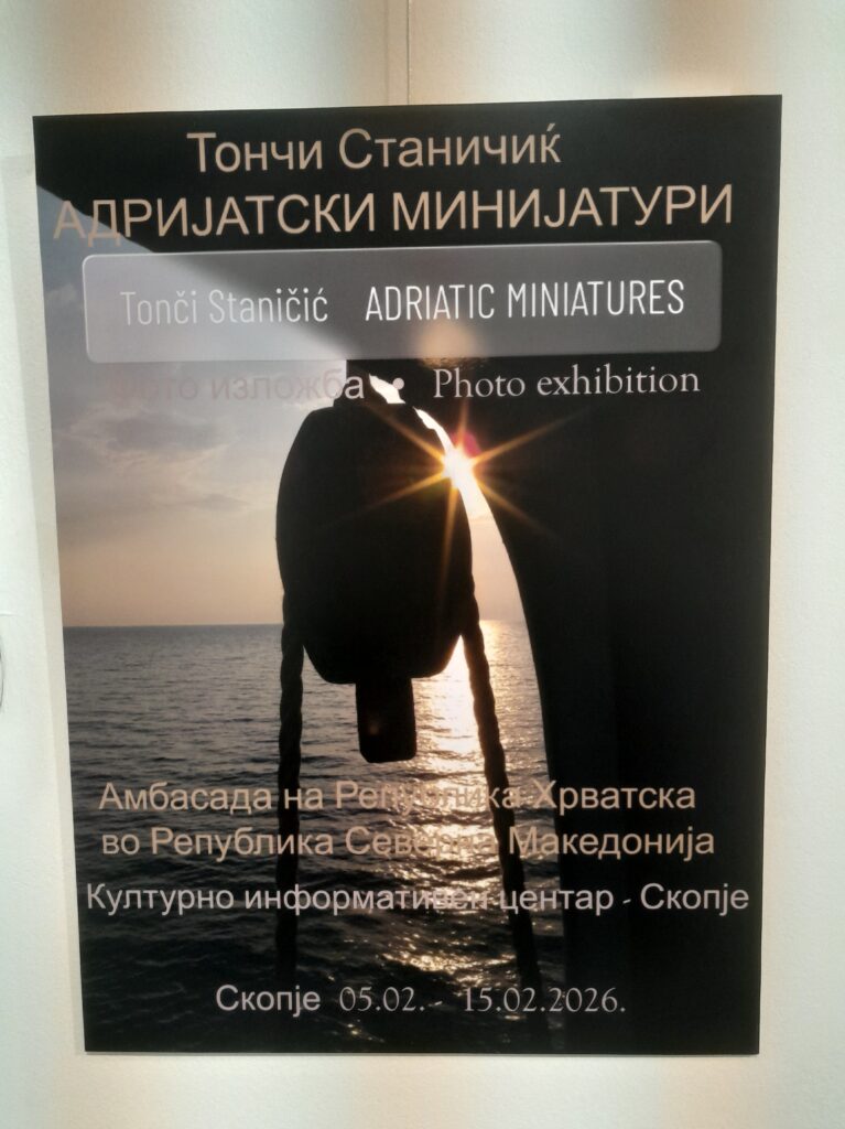 Денес, на 5 февруари 2026 година, во Културно-информативниот центар во Скопје свечено беше отворена изложбата „Јадрански минијатури“ на реномираниот автор Тончи Станичиќ – дипломат, правник и страстен љубител на фотографијата. Настанот е организиран под покровителство на Амбасадата на Република Хрватска во Република Македонија и ќе трае до 15 февруари, оставајќи простор љубителите на уметноста да се нурнат во светот на светлината и сенките.