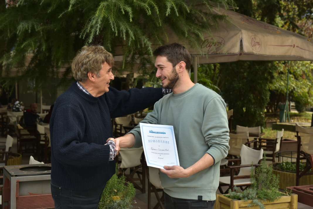 На неформалната средба признанијата им беа врачени на авторката на првонаградениот расказ „Кажи му на кучето“ – Симона Јованоска, на Ивана Смилевска, добитничка на втората награда за „Герника“, Моника Стојановска, третонаградена за расказот „Розов еж“, Бјанка Станковиќ, наградена за расказот „Морска“ и Силвана Димитриевска за расказот „Вода“.