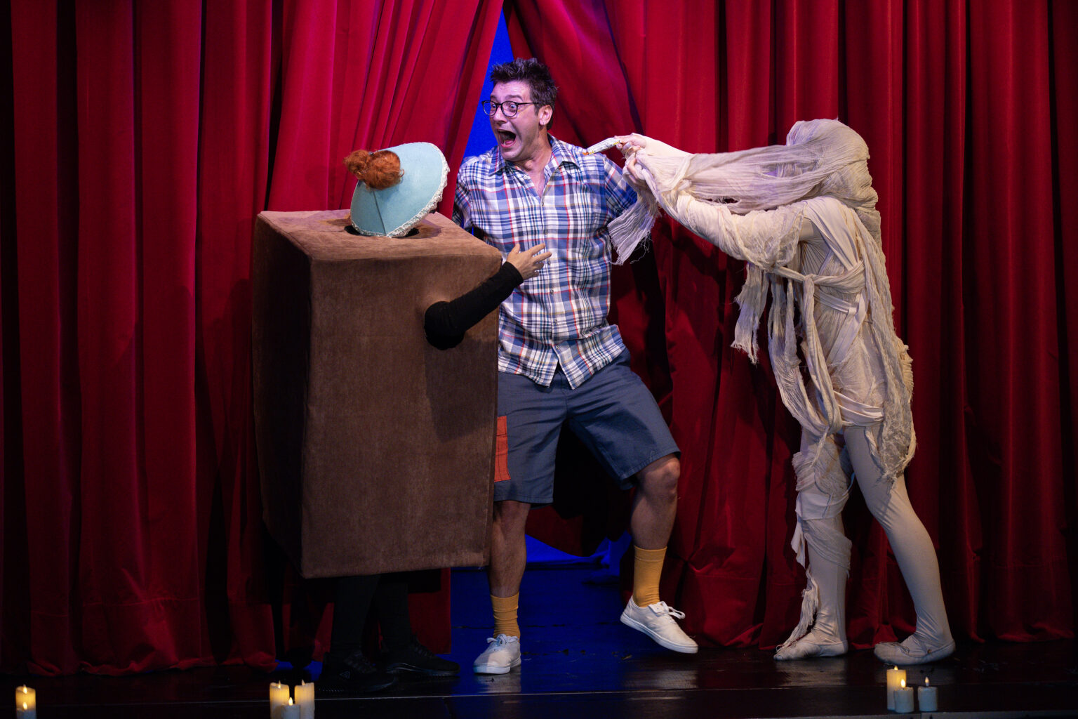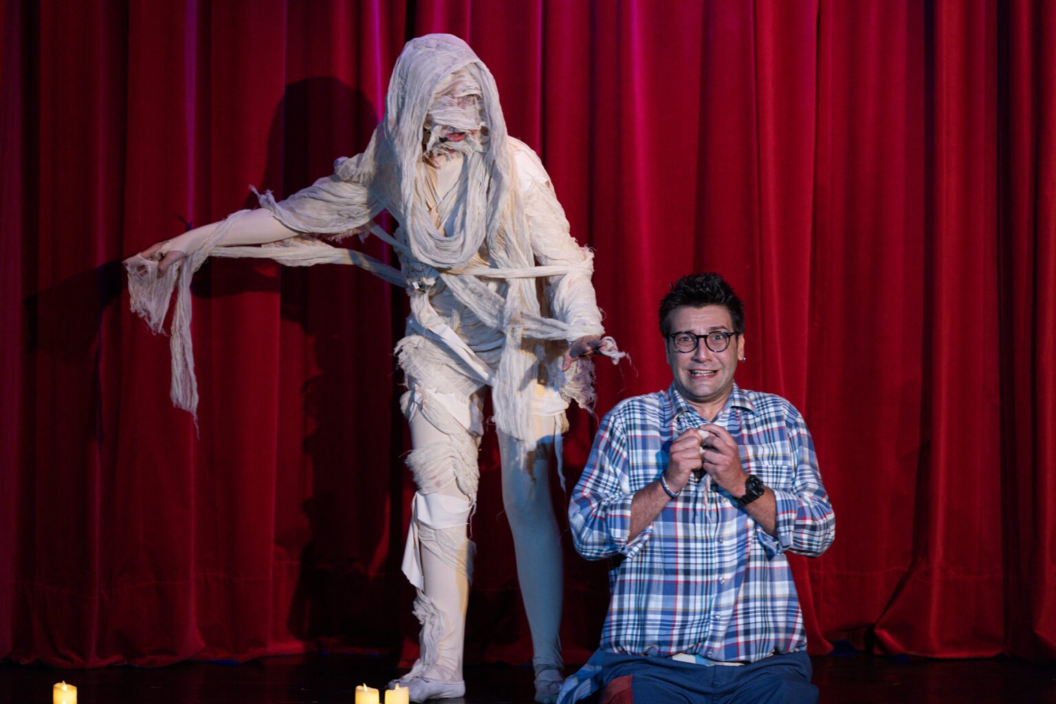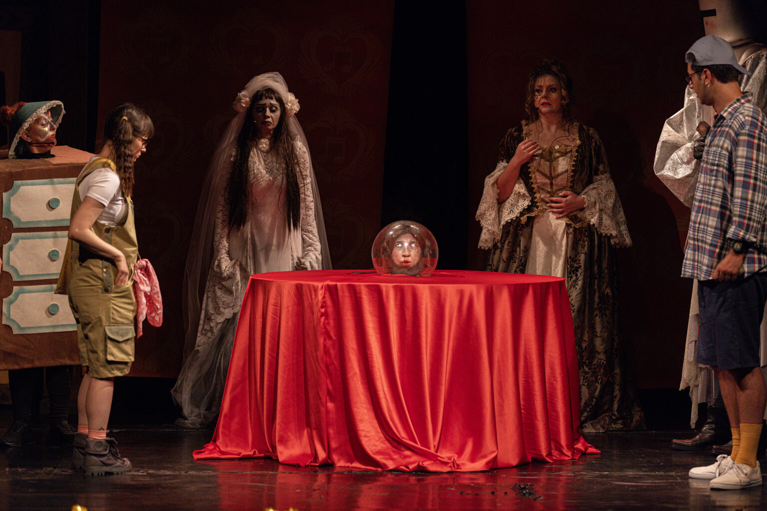 Во актерската изведба на претставата вклучени се : Ангела Димитрова, Петар Стојанов, Мики Анчевски, Винета Дамческа Мојаноска, Никола Наковски, Емра Куртишова Стојанова, Симона Спировска и Марија Ѓорѓијовска.