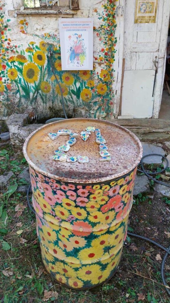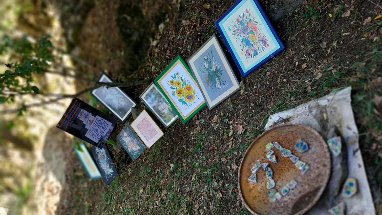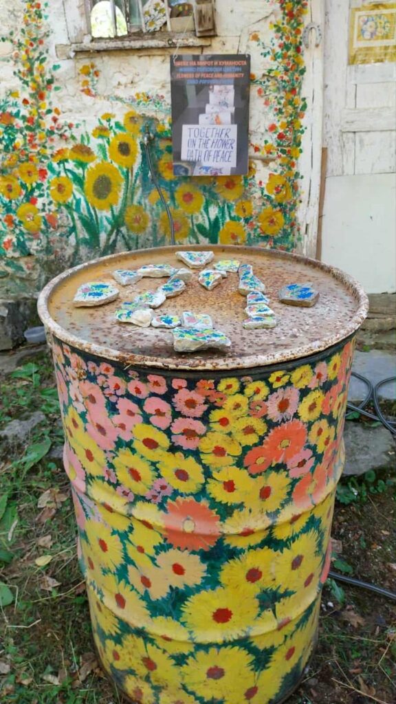 Изложбата е поставена во дворот на „Куќата на цвеќето на мирот“ во с. Брезово, Демир Хисар.