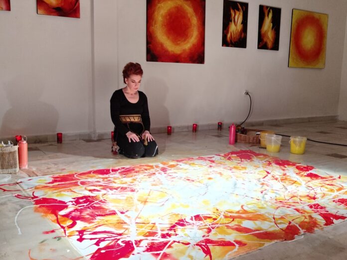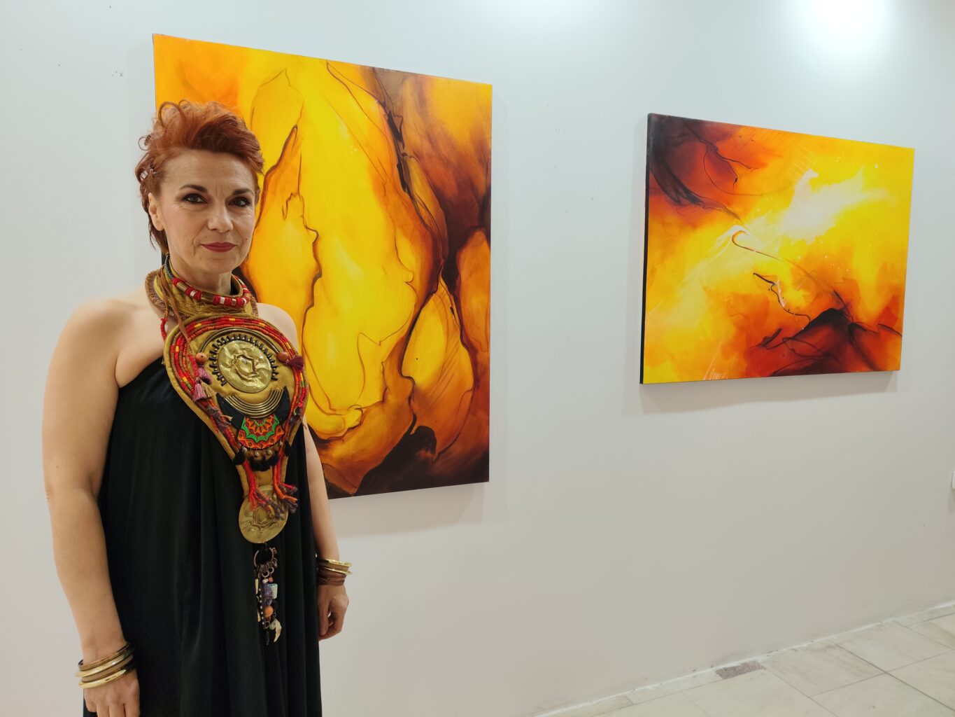 За делата на Артиновска, говореше м-р Викторија Димеска, која посочи дека уметницата за новите апстрактни дела инспирацијата ја црпи од огнот.
