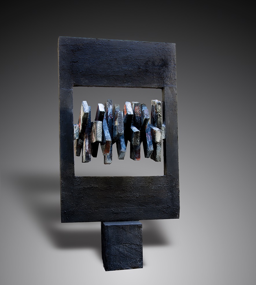 – Овие испреплетени облици, прецизно градени, напластени дрвени форми, во нивната сложена разновидност, во варијабилната низа на асоцијации (од чисти геометриски до асоцијативни флорални мотиви), во себе носат карактеристики на едно медитативно и наместа ирационално расположение што го емитуваат неговите спонтани игри на архитектонски градените асоцијативни вертикали – посочува Викторија Васева Димеска.
