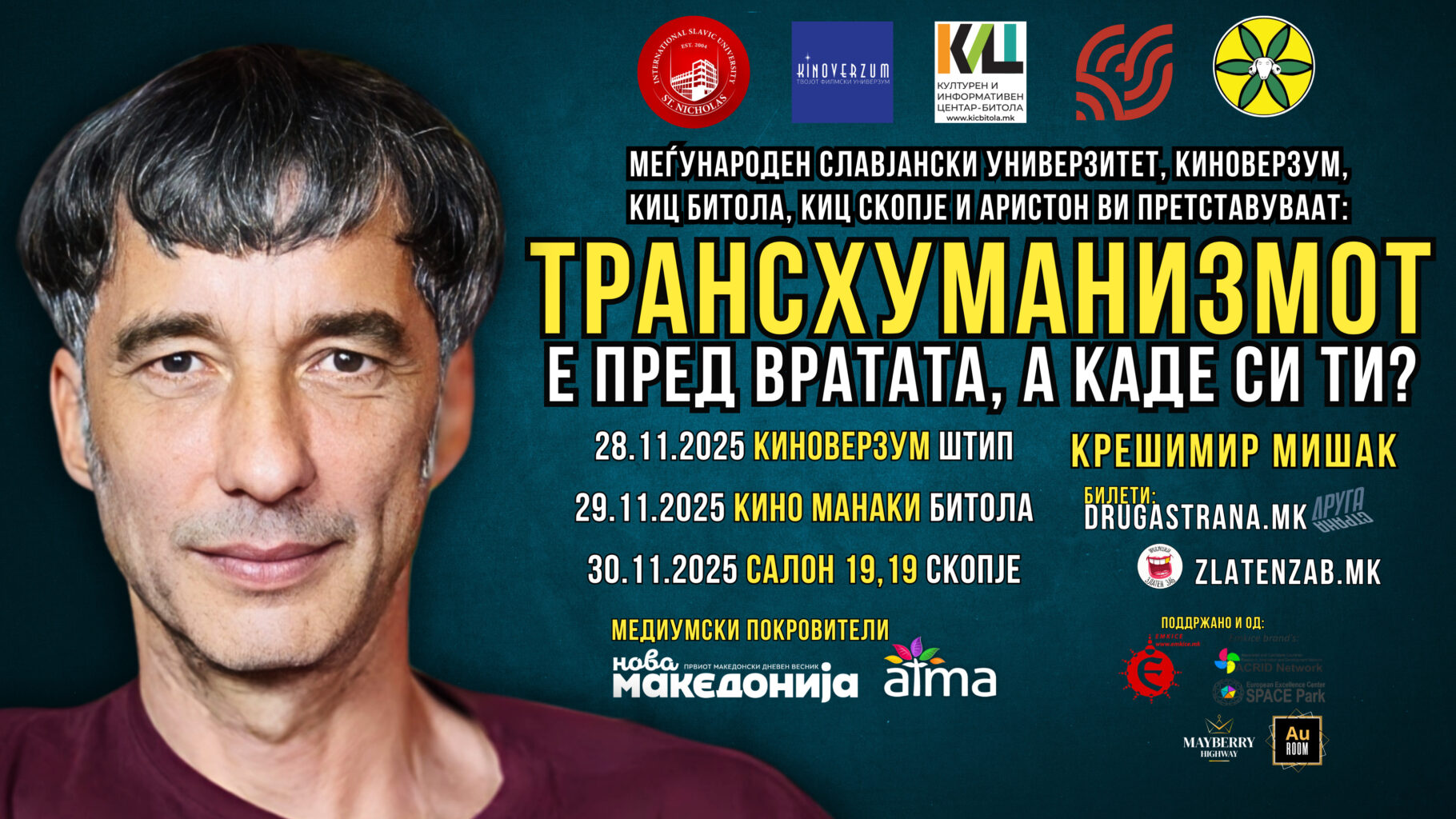 Авторот на култната емисија „На Рубу Знаности“, легендарниот Крешимир Мишак повторно во Македонија! По успешното предавање во Свети Николе во септември годинава, еден од најголемите умови на денешницата повторно доаѓа во Македонија со специјално предавање насловено „ТРАНСХУМАНИЗМОТ Е ПРЕД ВРАТАТА, А КАДЕ СИ ТИ?“. Крешимир Мишак е новинар, истражувач, писател, публицист и музичар кој има објавено над 10 книги и повеќе албуми. Во овие три дена во Македонија доаѓа со специјално предавање во траење од 90 минути.