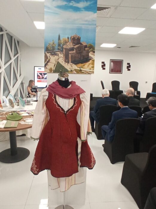 Македонскиот штанд беше претставен со фото-плакат на црквата „Св. Јован Канео“ во Охрид и една стара носија (изработена во19 век) од Лазарополе која за оваа пригода ја отстапија сопствениците на македонскиот национален ресторан „Дукат“ во Доха, Ана и Бојан Перевски. Лили Ивановска се претстави со три свои дела – масло на платно и теракоти за што доби посебно признание од УНЕСКО.
