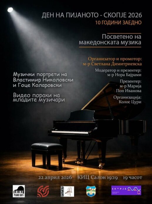 По одбележувањето на Денот на пијаното (Piano Day) пред неколку недели, младите пијанисти повторно ќе се претстават на концерт посветен на македонската музика. Делата за пијано на македонските композитори публиката ќе може да ги доживее и на 22 април во Културно-информативниот центар во Скопје, а свое видување за нив, преку видео-пораки, ќе дадат и изведувачите. Љубовта кон пијаното и македонската музика не завршува со календарот, таа бара нови сцени и нови средби со публиката, вели м-р Светлана Димитриевска, координатор на „Денот на пијаното – Скопје“ и раководител на одделот за пијано при ДМБУЦ „Илија Николовски – Луј“ во Скопје.