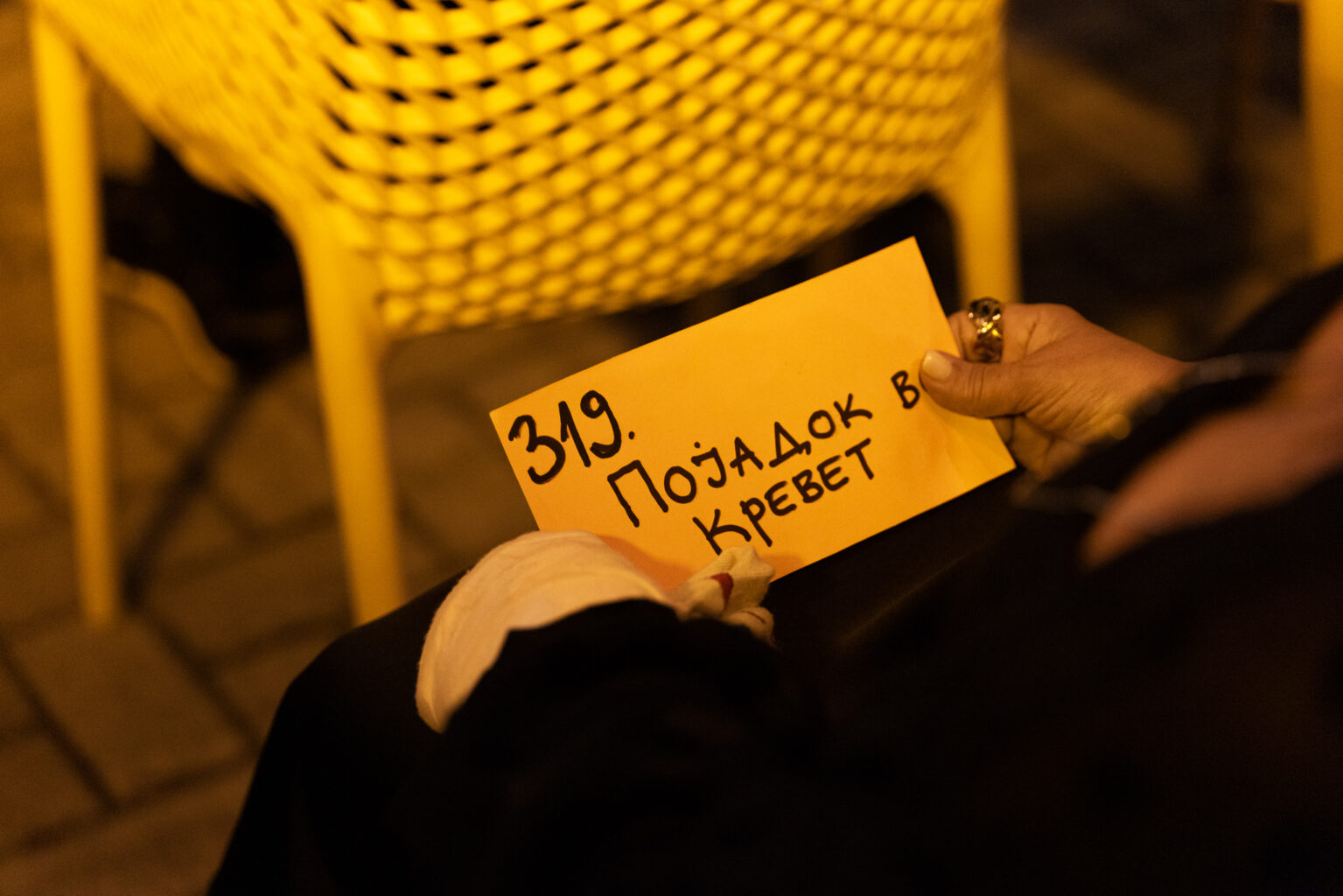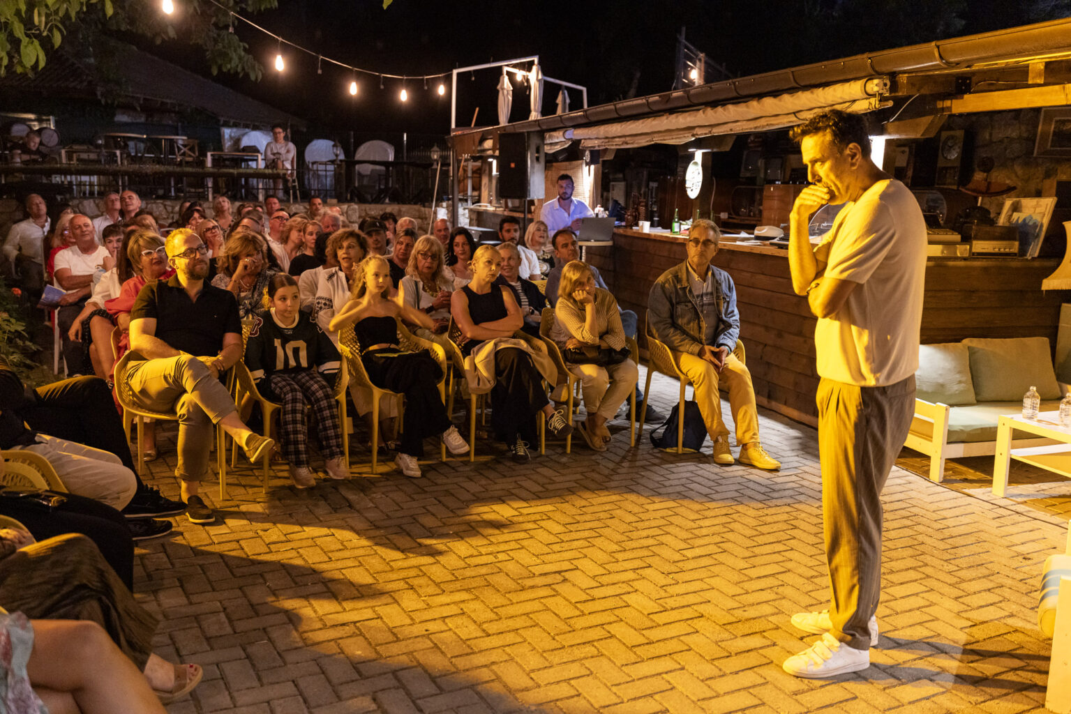 – Прекрасен амбиент, на многу интересно место, на несекојдневно место ја играм претставата, а што се однесува до реакциите секаде се исти без разлика дали ја играм во театар или надвор. Претставата ги допира луѓето. Пораката пред се е дека треба да се разговара, особено за работите за кои ни е најтешко да зборуваме- вели Ангелов.