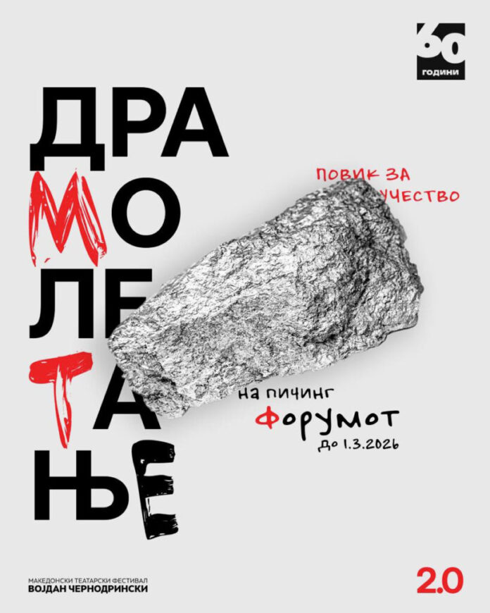 Пичинг-форумот ќе се одржи за време на МТФ „Војдан Чернодрински“ (13-14.6.2026). Апликациите ќе бидат оценети од страна на стручна комисија, која ќе одбере драми врз основа на нивната оригиналност, релевантност и продукциски потенцијал. Избраните автори ќе имаат можност да учествуваат во менторска подготовка за својата презентација, да ги претстават своите драми пред стручна публика, режисери, драматурзи и продуценти, како и да воспостават контакти за понатамошна продукциска реализација. Искористете ја оваа можност за да ја претставите вашата драма, да добиете стручни совети и да ја доведете чекор поблиску до сценска реализација! По форумот, дел од избраните драми ќе бидат објавени во второто издание на книгата „Драмолетање“ во издание на МТФ „Војдан Чернодрински“, со цел да се обезбеди видливост и поддршка на современата македонска драма. За сите прашања и дополнителни информации, обратете се на: [email protected]. Како резултат на „Драмолетање 1.0“, неодамна издадовме и книга во која се поместени четири драми избрани на првото издание на „Драмолетање“ – информираат од „Војдан Чернодрински“.