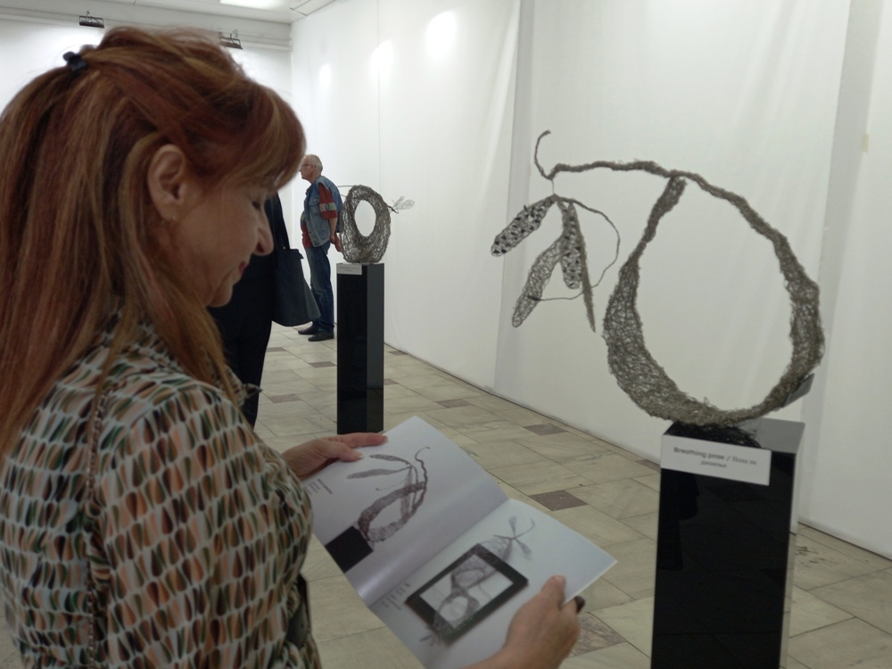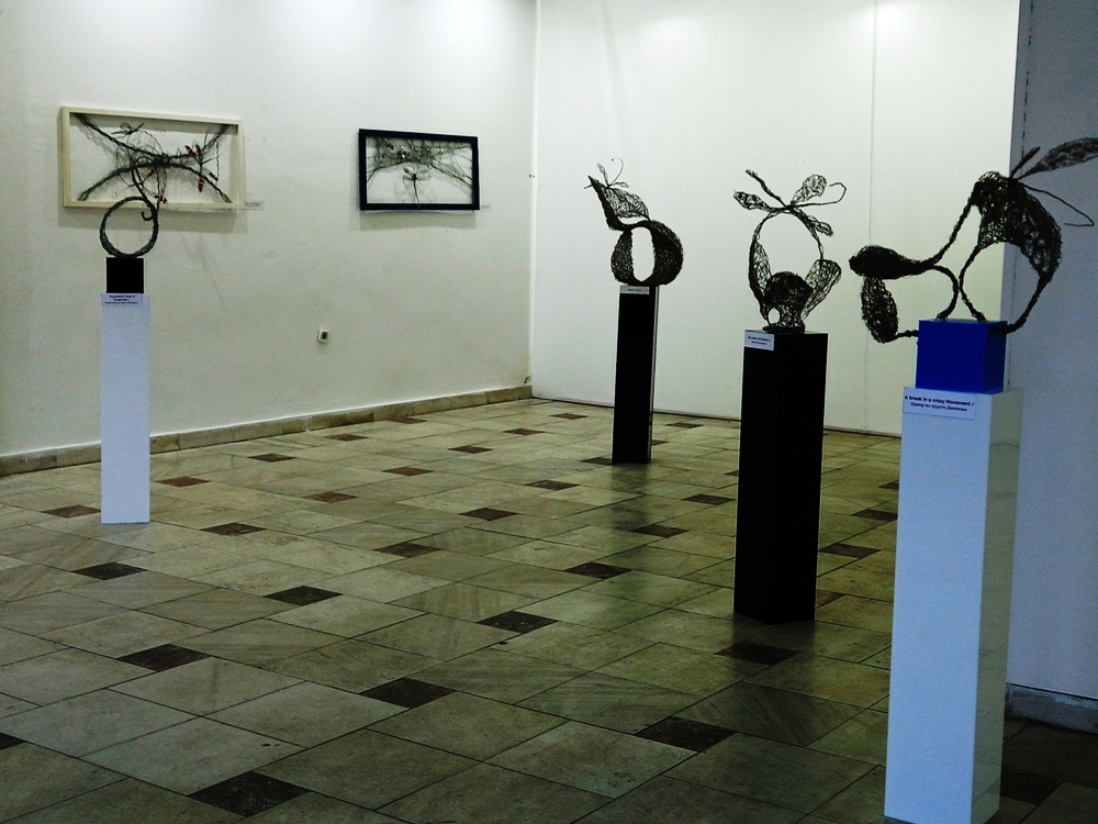 – Танева скулпторски раскажува слободна лирична наративност со дијагонално извиени и динамични асоцијативни апстракции. Впечатливиот треперлив контраст во текстурата на формата е постигнат со таинствен ткаеж на јажињата внимателно создадени во преплети со различна густина – на одредени места таа е збиена, додека на други густината на преплетот е разредена. Моделираните мрежести асоцијативни облици излегуваат надвор од рамките на дрвените рабови на ѕидните инсталации и формираат илузија на динамичност. Апстрахираните облици коишто асоцираат на вилински претстави доминираат во севкупниот наратив на преплетените интервенции. Заробени во магична мигновеност, загадочните растреперени вилински структури егзистираат во имагинарен артифициелен свет пленејќи со својата лиричност, чудесност и моќност – истакна историчарката на уметност, Викторија Димеска, која ја отвори изложбата.