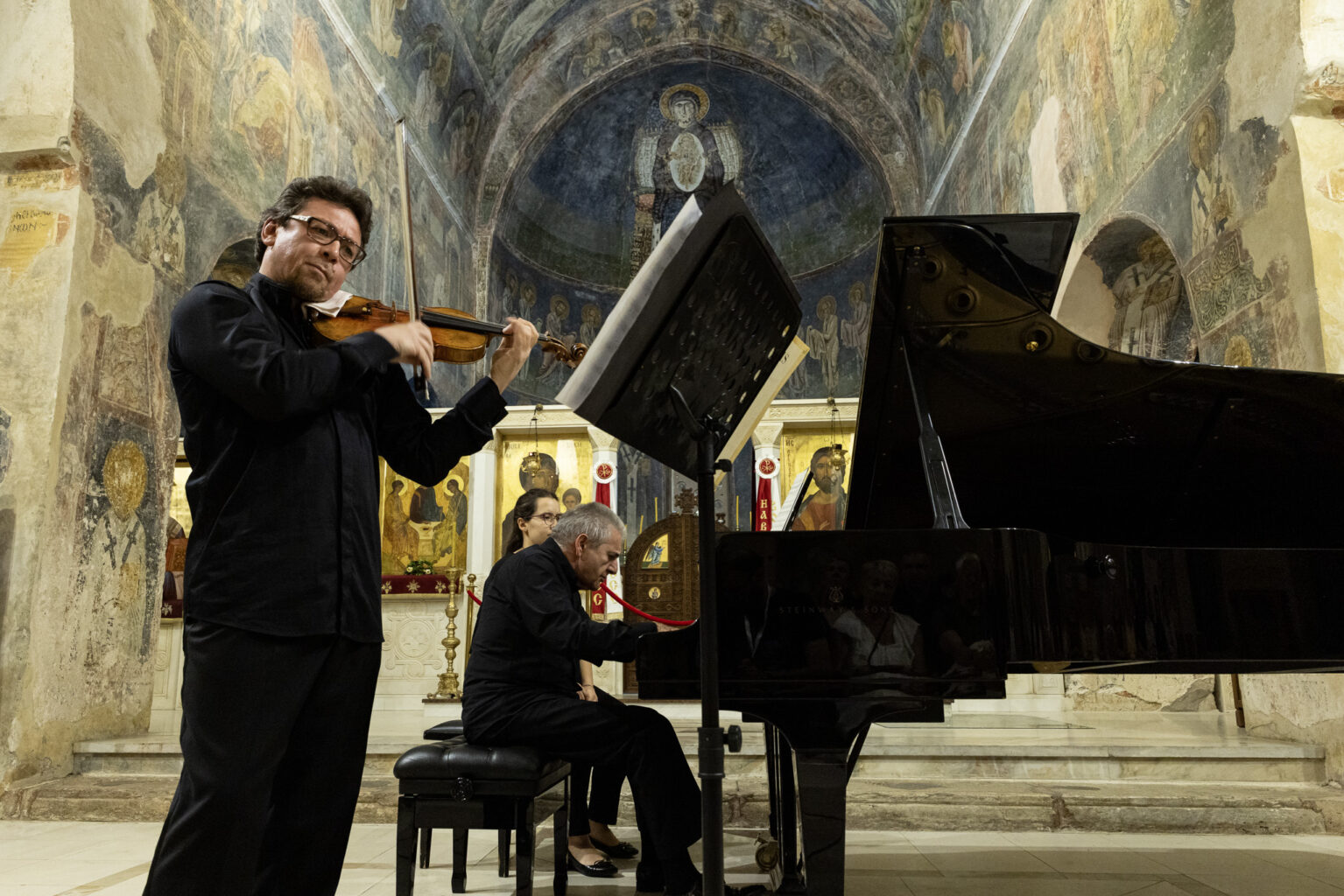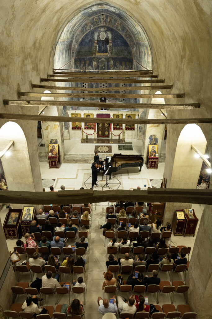 Репертоарот на класична музика на „Охридско лето“ вчеравечер продолжи со концерт на македонскиот виолинист Емир Имеров и израелскиот пијанист Ваг Папиан.