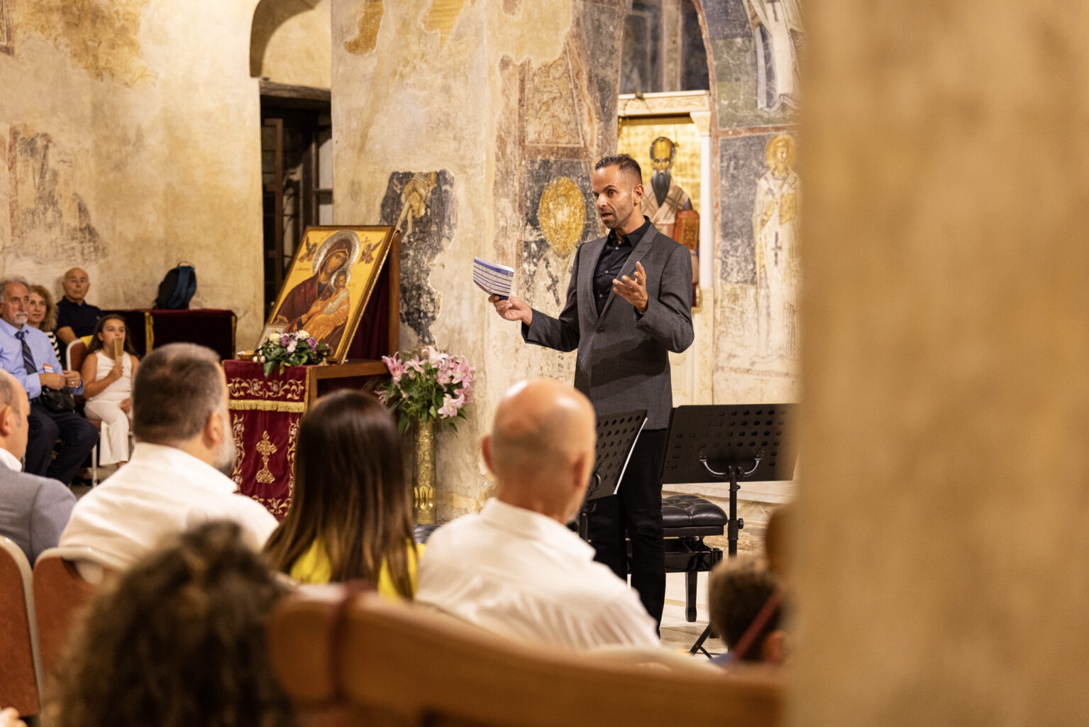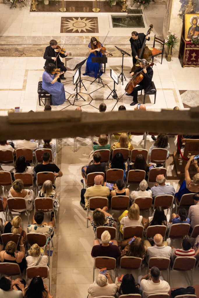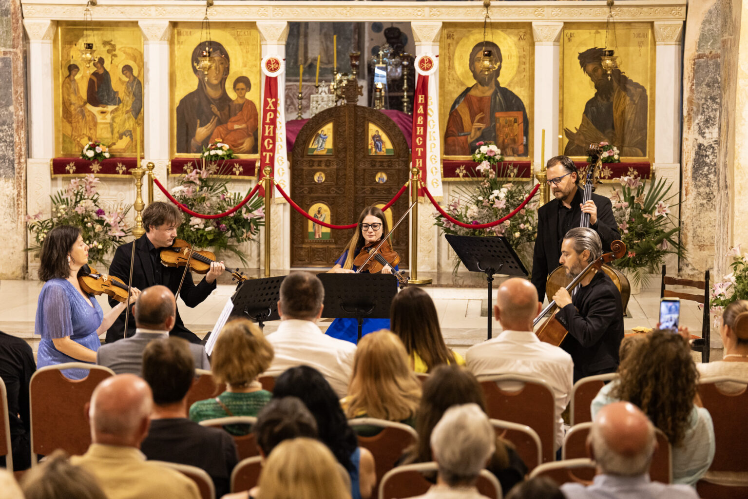 Публиката уживаше во извонредната изведба на виолинистите Сузан Мерт-Томази и Андреј Јаблоков, на виолистката Елеонора де Пои, виолончелистот Леонардо Сесена, како и на контрабасистот Драган Трајковски кој е по потекло од Македонија и е водач на групата контрабаси на Тиролскиот симфониски оркестар повеќе од 15 години.