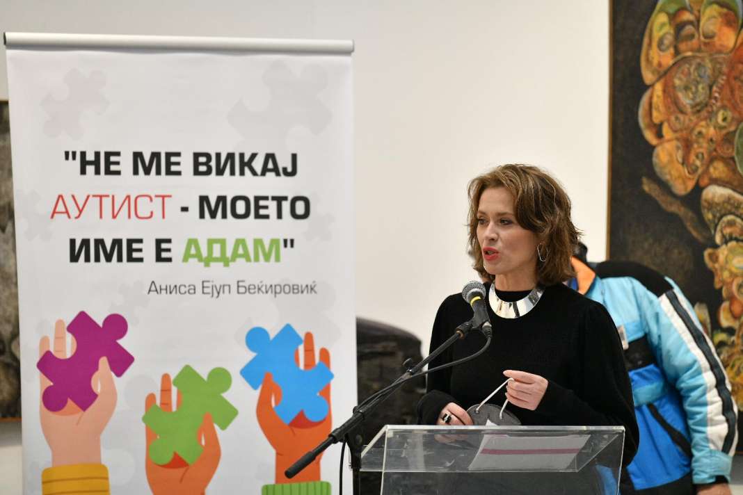 Пред големиот број присутни, кои на тој начин сакаа да ја изразат својата поддршка за овој проект, бидејќи кај нас се ретки дела со ваква тематика, прва се обрати директорката на Националната галерија, д-р Дрита Старова – Ќерими, а модератор на настанот беше м-р Маја Димитрова, едукатор при Национална галерија,која континуирано со години наназад реализира проекти во насока будење на свеста за аутизмот.