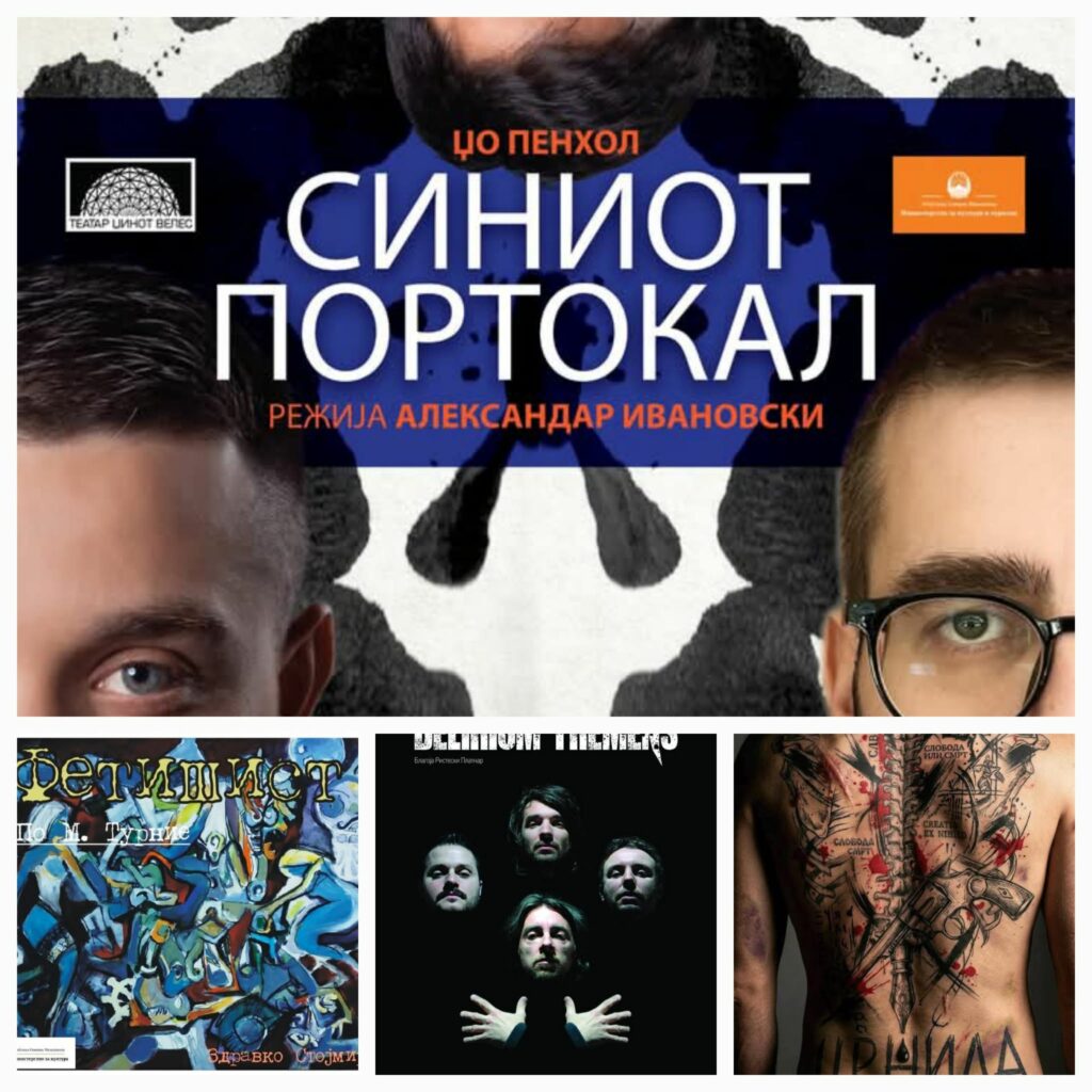 Богатата театарска програма започнува вечерва од 20 часот кога на Сцена 105 ќе биде изведена претставата „Синиот портокал“ од театарот „Јордан Хаџи Константинов – Џинот“ од Велес. „Синиот портокал“ е повеќе годинишна претстава на Велешкиот театар, работена по текст на Британецот Џон Пенхол, во режија на Александар Ивановски, а во претставата играат Фаик Мефаиловски, Жарко Спасовски и Благојчо Стојанов.