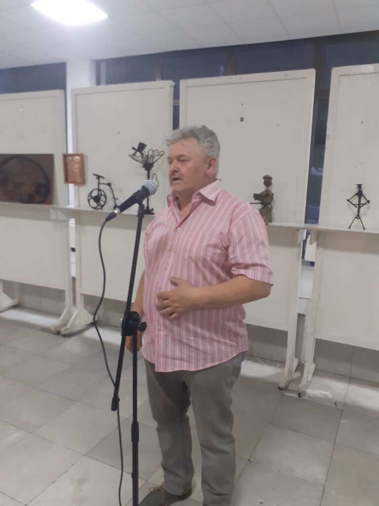 -Оваа изложба и овие дела се резултат на мојата безгранична креатура и инвенција, која на себе својствен начин ја вградив во секое од овие дела. Изложбата ја сочинува опус од триесетина дела во кои се содржани „Шампион“, „Велосипед“, „Зачнување“, „Прослава“, и многу други. Вашето присуство ми дава мотив плус во текот на есента со нови експонати да ја подготвам и четвртата самостојна изложба. Овие дела и оваа изложба се уникат кој во блиска иднина планирам да ги презентирам и во соседните градови. Сигурен сум дека овој вид на творби за прв пат се прикажуваат на една изложба во нашата земја. За изработените дела мотив ми дадоа и делови од одредени железни производи, кои на својствен начин ми ја одредуваат идејата што да создадам од дадениот материјал-нагласи пред многубројните посетители мајстор Галиман, кој на крајот ги замоли присутните ако има нешто да го прашаат тоа слободно може да го сторат.