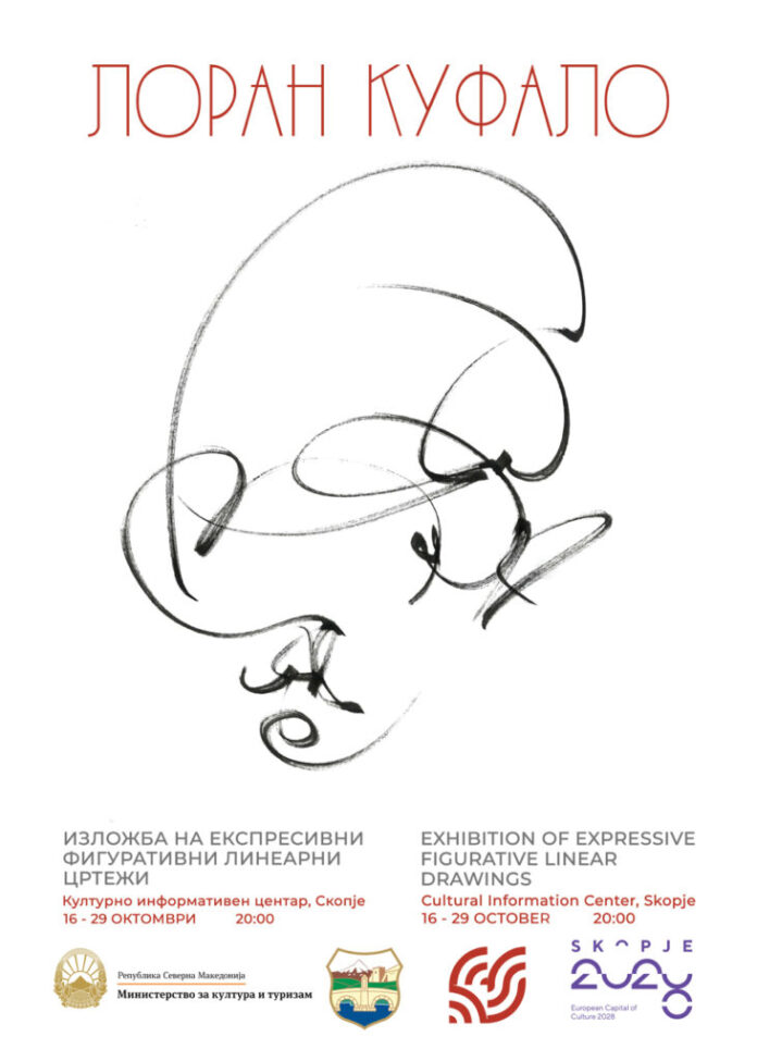 Културно-информативниот центар – Скопје поканува на отворањето на изложбата на цртежи од ликовниот уметник Лоран Куфало насловена „Муабет со портретот и актот преку цртежот“ денеска, во 20 часот, во Културно-информативниот центар – Скопје, изложбен салон Империјал 1.