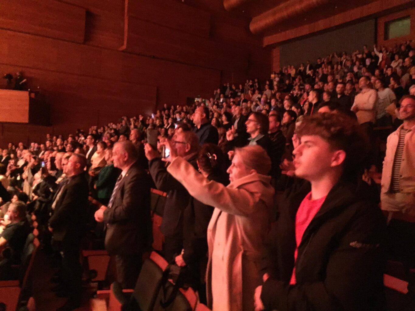 И публиката пееше, аплаудираше во ритам, а кај многумина во салата, имаше грутка во грлото, заматен поглед поради сеќавањата што навираа на предците наши кои се бореа за слобода, ставајќи го својот живот во залог без размилслување. Истовремено додека одекнуваа песните, а старите фотографии што се сменуваа на големиот екран, сведочеа за македонската голгота, бевме свесни дека колку и да продолжуваат да не оспсоруваат и дома и надвор, народниот гениј ја сочувал нашата генеза преку песните, што творци како Стефче Стојковски, одново и одново ги откриваат и им го продолжуваат животот, пренесувајќи ги од колено на колено.