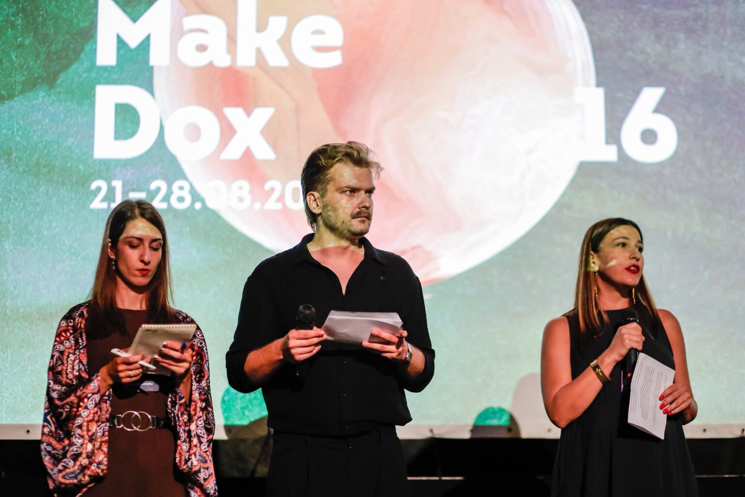На отворањето на 16-тото издание на „МакеДокс“ во името на екипата се обратија Сара Ферро и Дарко Набаков, кои прво упатија благодарност до публиката што беше присутна во Куршумли ан на отворањето на „МакеДокс“ под мотото: „Кому му е гајле за реалноста?“