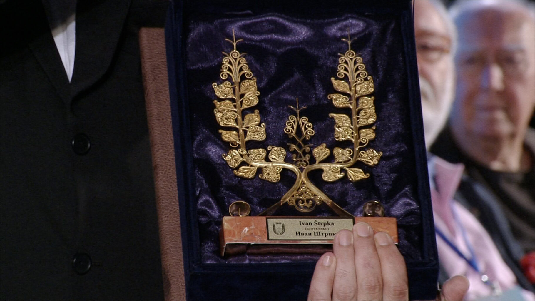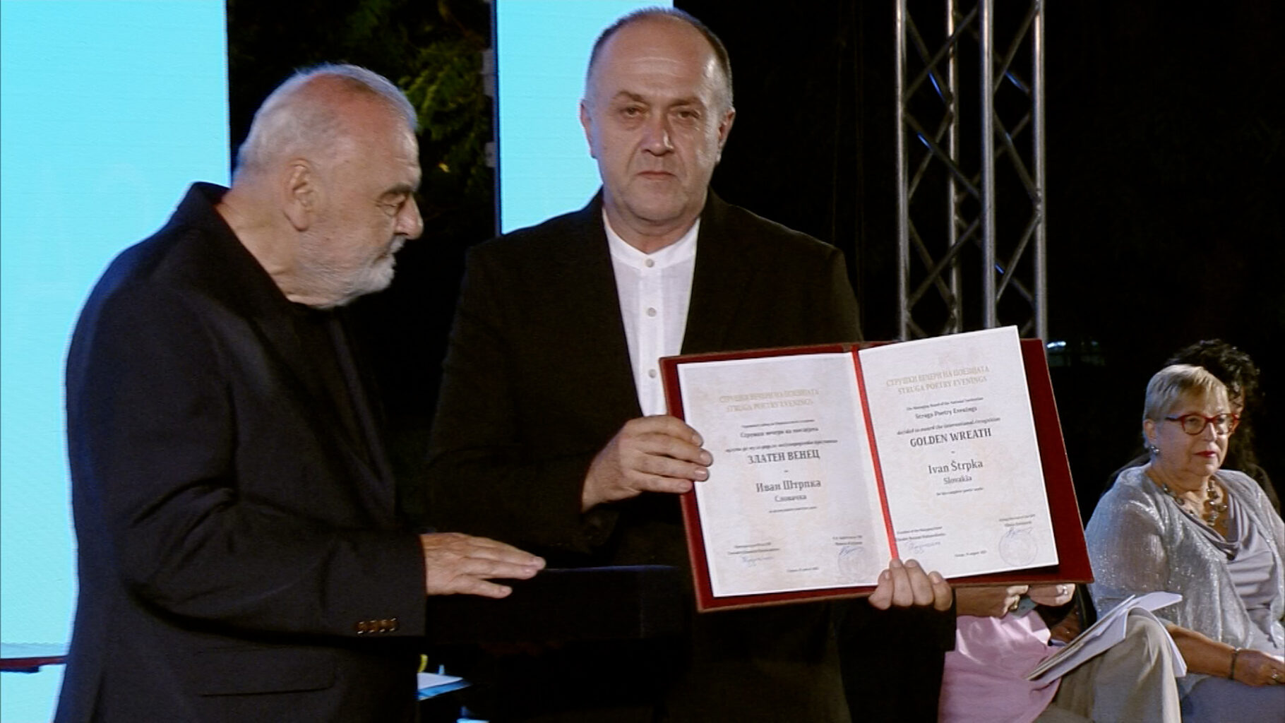 Наградата „Златен венец“ на словачкиот поет Иван Штрпка му ја врачи директорот на НУМ Струшки вечери на поезијата, Никола Кукунеш.