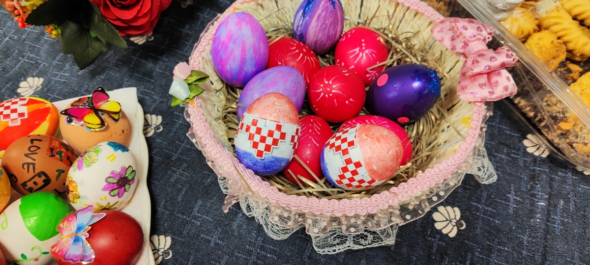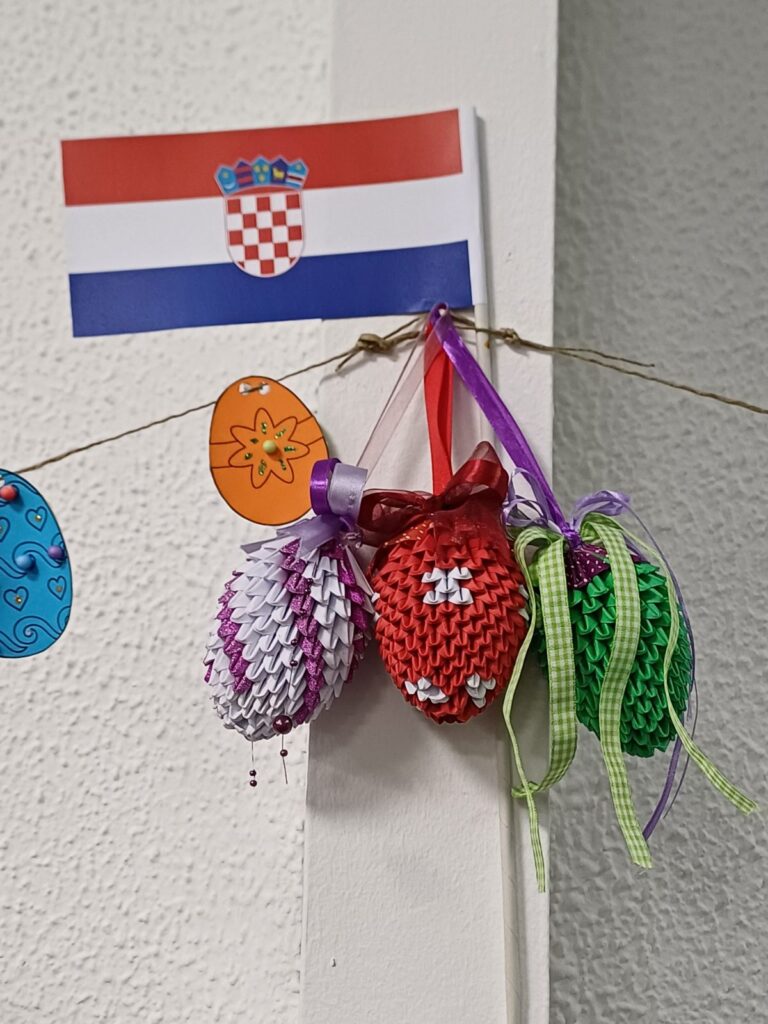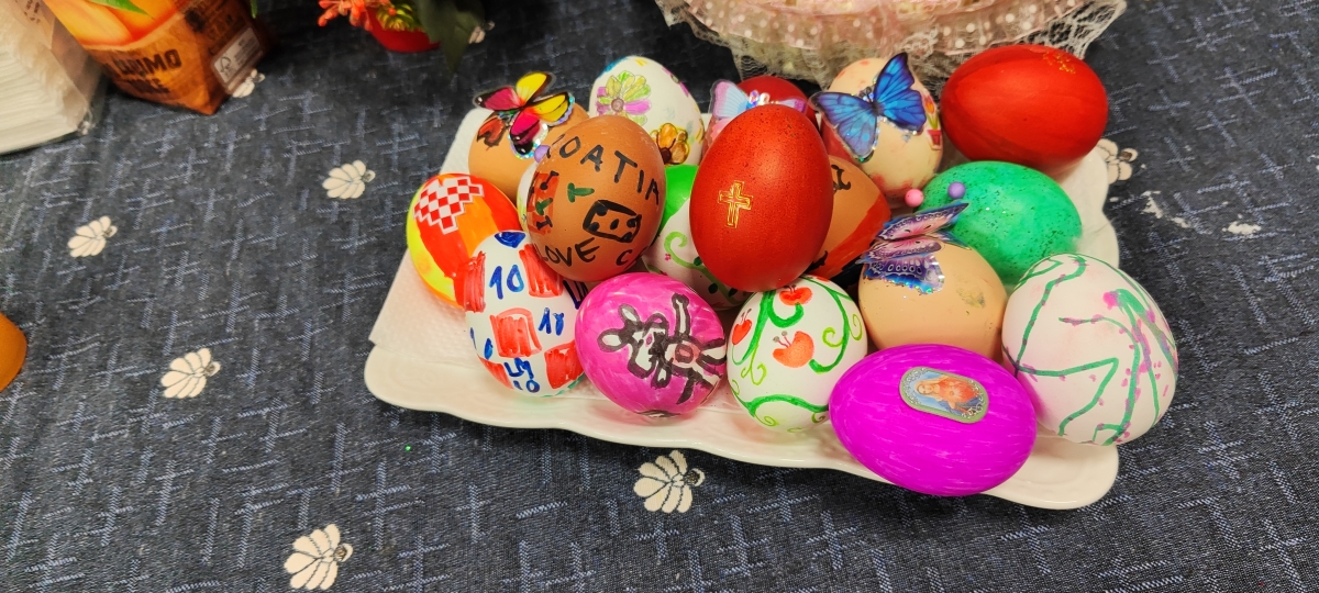 – Просториите на Заедницата на Хрватите се претворија во креативна мала работилница каде што цело време преовладуваа празничниот дух и чувството на претстојниот Велигден. Покрај бојадисувањето на јајцата, децата сечеа со ножици, користеа лепак, се создаде навистина работна и креативна атмосфера. Резултат на сето тоа беа прекрасните велигденски јајца, секако повеќето со мотивот „Љепе наше“. Иако не се вклучени во категоријата вистински јајца, не смееме да ги заборавиме ни прекрасните хартиени јајца, кои за оваа пригода ги изработија нашите вредни членови, сестрите Снежана и Виолета Зајкова, а кои ќе бидат еден вид уметност што ќе ги краси нашиот простории – рекоа од Заедницата на Хрватите во Македонија.