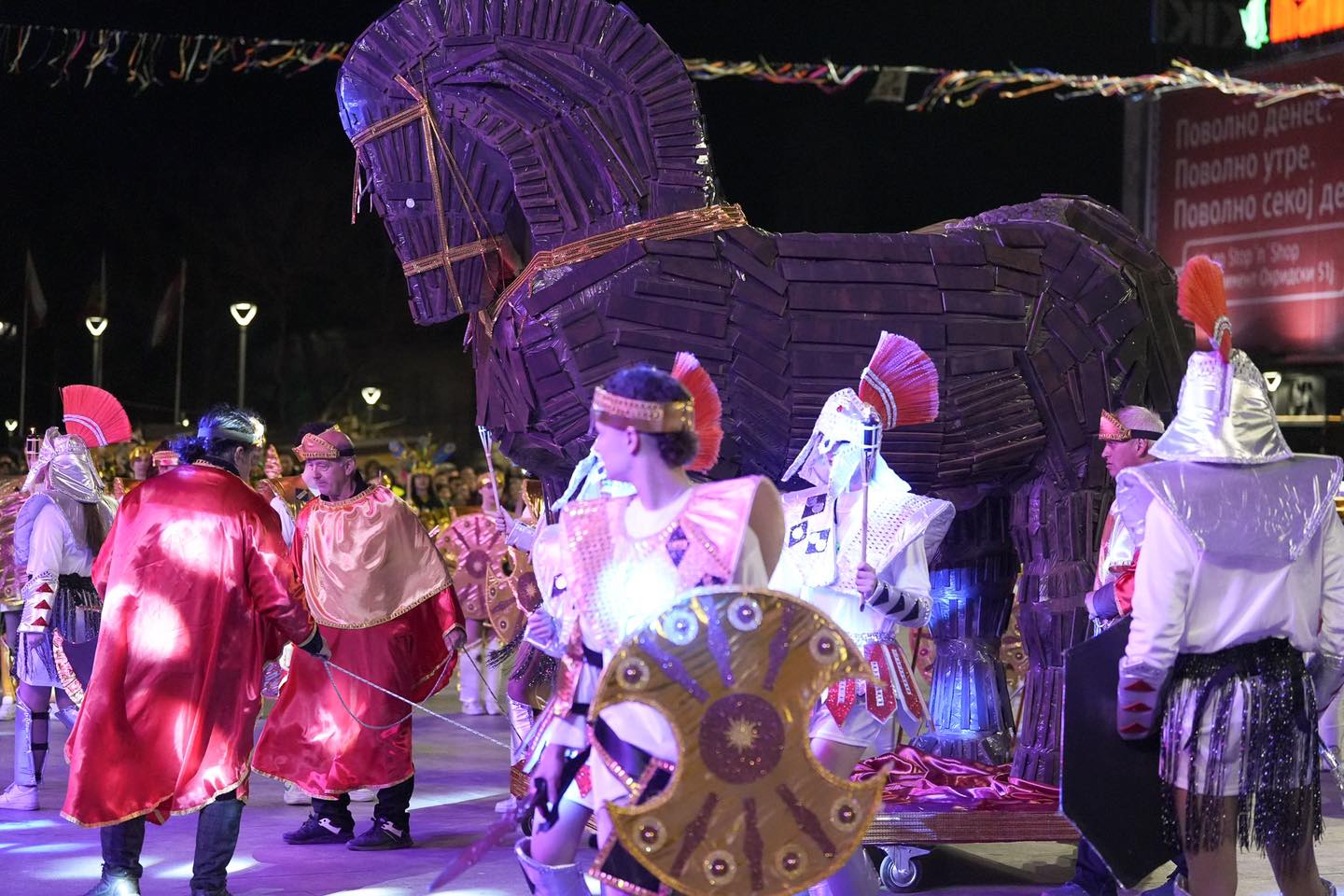 Карневалот традиционално го отворија струмичките мажоретки, а први настапија перкусионистите-гостите од Кукуш, Грција. По нив како на филмска лента се редеа маски со мотиви од цел свет, а реката од маски само на момент запираше кога групните, но и поеденичните маски, ги претставуваа своите кореографии пред жирито и бројната публика.