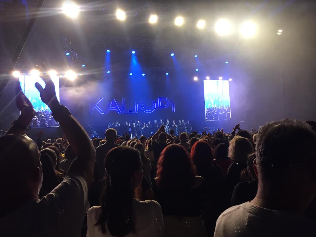 И се случи нешто што долго ќе се памети. Публика од сите генерации, најмногу од средната, трпеливо чекаше во долга редица да влезе во салата. Одамна немам видено толку убави луѓе, на едно место. И сите расположени да уживаат во бројните хитови на Калиопи, што таа ги отпеала изминатите 40 години, колку што трае и нејзината соработка со нејзиниот бивш сопруг Ромео Грил, кој за неа напиша безвременски песни.
