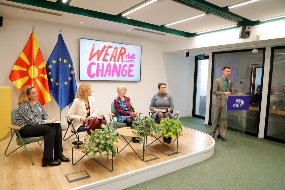 Панел-дискусија во „Јуроп хаус – Скопје“ ги обедини претставниците на граѓанскиот сектор, академијата и на бизнис-заедницата. Целта беше да се воочат структурните економски недостатоци со кои се соочуваат жените во Македонија и финансиското влијание на родовата нерамноправност врз општеството. Настанот, насловен „Кој ја плаќа сметката? Цената на нееднаквоста“, го обележа почетокот на кампањата „Носи ја промената“ и на националната турнеја. Дискусијата беше фокусирана на економските последици од родовата нееднаквост низ целиот животен циклус, од образованието и влезот на пазарот на трудот до кариерниот развој, претприемаштвото, грижата за семејството и пензионирањето.