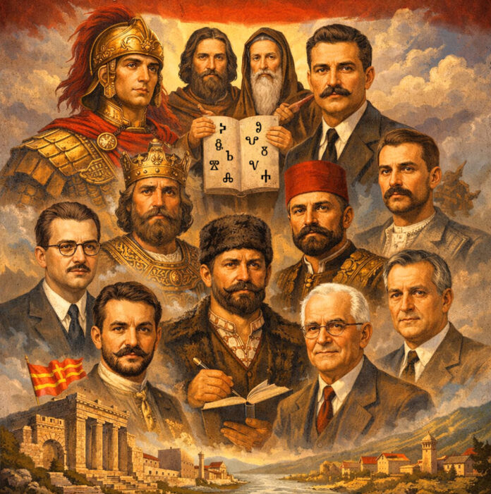 Десет историски портрети што ја обликуваа културната, политичката и јазичната трајност на македонскиот простор претставуваат повеќе од збир на имиња и датуми: тие се прозорци кон сложените процеси што го формирале колективниот карактер на македонскиот народ. Секој портрет открива слоеви на влијание – од материјалните траги и институционалните реформи до зборовите што ги зборуваме и митологиите што ги пренесуваме – и покажува како поединечните дејства, идеи и жртви се претвораат во долгорочни структури на македонско паметење и македонски идентитет. Во овие портрети се преплетуваат политички визии и практични акции: државотворни потфати, отпори и институционални градежни проекти што ги дефинираат јавната сфера и правните рамки. Тие исто така ја осветлуваат културната димензија – уметноста, образованието и религиозните практики што ги обликуваат вредностите и естетските референци на македонските генерации. На крајот, јазичната трајност се појавува како клучен столб: стандарди, кодификации и литературни дела што ја конституираат способноста на македонскиот народ да се изрази, да се организира и да се пренесе себеси низ времето.