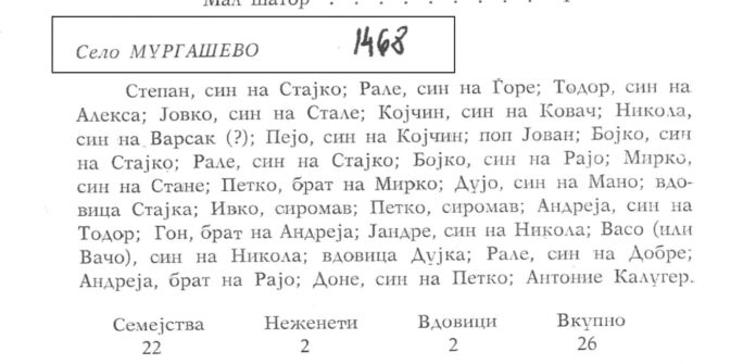 Во турските пописни дефтери од 1468 година, Мургашево е наведено како населено место исклучиво со православно, христијанско население. Овој податок е мошне важен, бидејќи станува збор за официјален документ на османлиската држава – административен регистар што ја бележел секоја даночна единица, со јасна евиденција за етничката и верската припадност на жителите. Таквите податоци не оставаат простор за сомнеж: во средината на 15 век Мургашево било чисто православно село. Оттука се јавува природната дилема – ако жителите биле православни, каде се нивните цркви и гробишта?